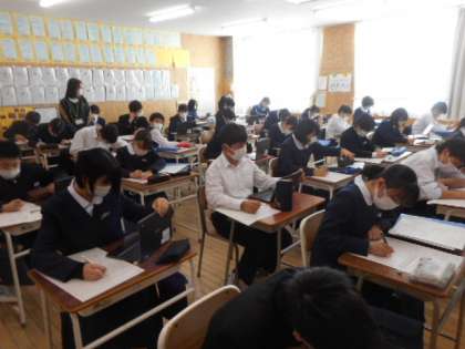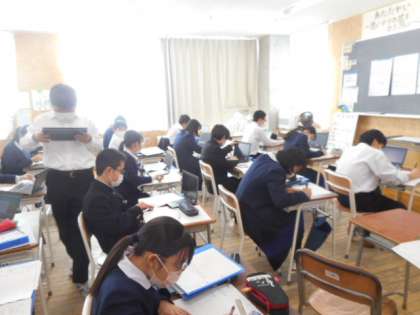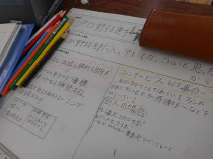 1学年の「総合的な学習の時間」の授業風景です。冬休みに調べた職業について、さらに追究し、ポスターを作成しています。自分の身近な人や憧れの職業について調べています。