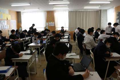 今日は、いままで調べてきた職業についてをまとめるポスター作成を行いました。各クラス真剣な雰囲気で、ポスター作成に取り組んでいました。