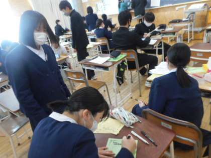 3学年の授業の様子です。卒業に向けての取り組みが、スタートしています。3年生は、3月15日に義務教育を終えて、芝園中学校を巣立っていきます。学年生徒会が中心となって、感謝の想いをどのようにして伝えるかを考え取り組んでいます。