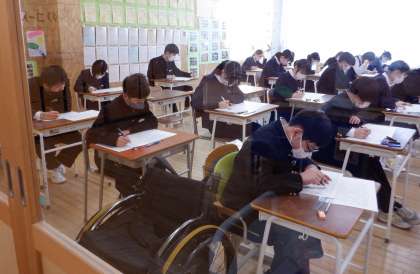 2学年の学年末考査の様子です。国語のテストに取り組んでいます。