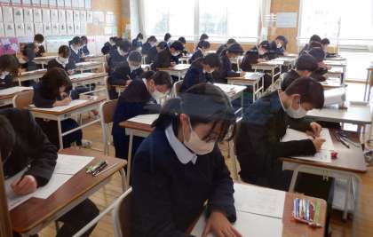 画像は、1年生の学年末考査の様子です。