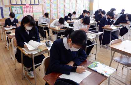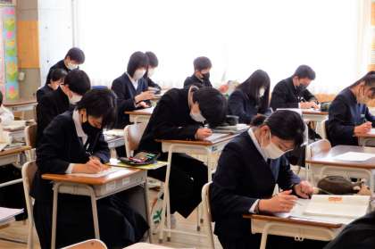 3−Cの国語の授業風景です。一人一人が課題に真剣に向き合っています。クラスも落ち着いたいい雰囲気です。来週は、いよいよ県立高校一般選抜です。みんなで、いい雰囲気を作っていきましょう!