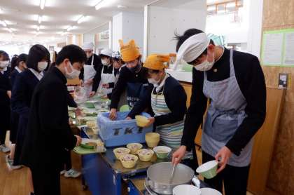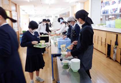 3年生の給食風景です。当番は、手際よく準備をしています。さすが、3年生ですね!