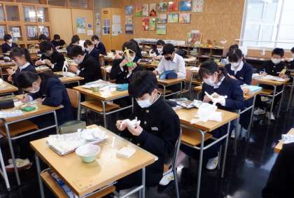 いよいよ完成 その2 2−B美術 公開日 2023/03/02 更新日 2023/03/02 芝園の一日 3月2日(木) 1限 仕上げのニスを塗ったり、最後の肉付けをしたり、一人一人が自分の課題に取り組んでいます。