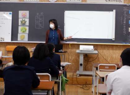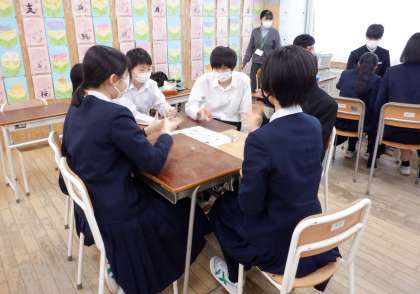 3−Cの家庭科の授業風景です。これからの社会の情勢は刻々と変化し、予測不能であると言われています。そんな社会で生きていく上で、大事なことはいろいろあると思いますが、その一つにコミュニケーション能力があります。