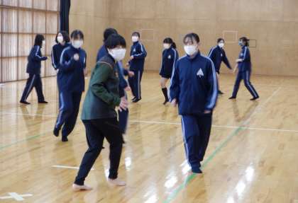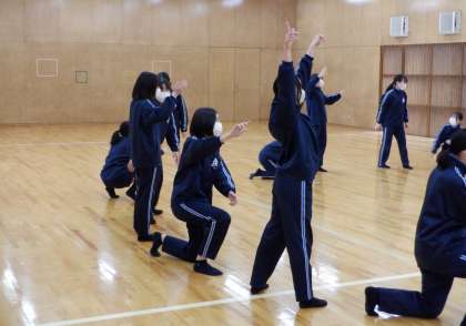 ダンスは楽しいな 3−A、D体育 公開日 2023/03/07 更新日 2023/03/07 芝園の一日 3月7日(火) 2限 3−A、D女子の体育の授業風景です。今日が最後のダンス。生徒も先生もノリノリです。体育大好き!