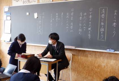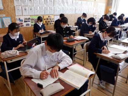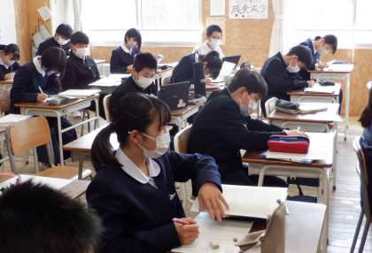 集中しています! 1−C国語 公開日 2023/03/08 更新日 2023/03/08 芝園の一日 3月8日(水) 2限 1−Cの国語の授業風景です。「実体験をもとに、表現や描写を工夫した随筆を書こう」という課題で学習をしています。クロムブックで素案を考えている生徒、先生に確認をしている生徒、清書に取り組んでいる生徒など、それぞれのペースで学習を進めています。