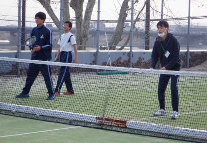 部活動頑張っています その2 公開日 2023/03/08 更新日 2023/03/08 芝園の一日 3月8日(水) 放課後 男子ソフトテニス部の活動の様子です。みんないい表情で活動をしてます。あれ、中には生徒と一緒に活動している先生も・・・。楽しく練習しています。