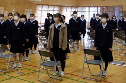 3月10日(金) 3限 証書授与の練習が終わった後、卒業の歌の練習をしました。