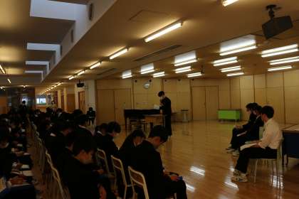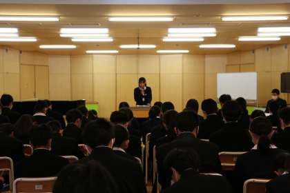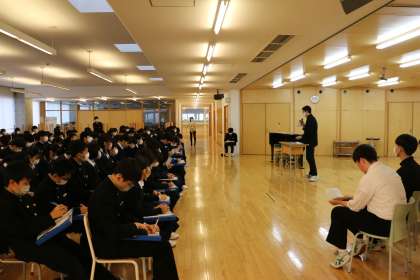 先輩の3年間の学校生活の経験から生まれた実感のこもったアドバイスや励ましの言葉に、1年生の生徒達は、メモを取りながら、話し手の先輩に真剣な眼差しを向けて、話を聴いていました。