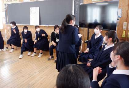 部活動お別れ会 その1 公開日 2023/03/13 更新日 2023/03/13 芝園の一日 3月13日(月) 放課後 本日、各部でお別れ会をしました。お世話になった3年生に、在校生から感謝の気持ちを伝えました。バレーボール部では、フルーツバスケットのゲームに、大いに盛り上がっていました。先輩との思い出が、また一つ増えましたね。 【画像上:陸上競技部、中・下:バレーボール部】