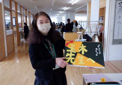3年生の学年集会では、お世話になった学年主任の先生に寄せ書きのサプライズ!ステキな3年生です。