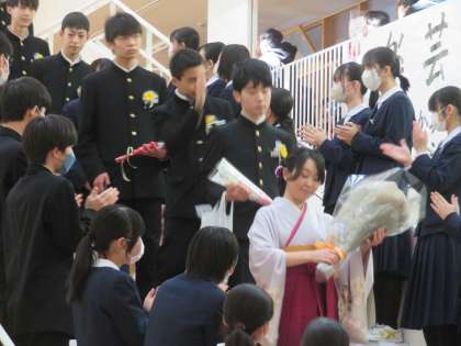 自立の鐘を 打たんかな その1 公開日 2023/03/16 更新日 2023/03/16 芝園の一日 3月16日(木) 芝中では、校歌の一節にならって、卒業生一人一人が「自立の鐘」を打って卒業していきます。 いよいよ旅立ちの時です。