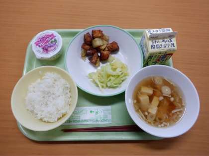 今日の給食 公開日 2023/03/16 更新日 2023/03/16 芝園の一日 3月16日(木) 今日の給食メニューは、 ・ごはん ・牛乳 ・魚とじゃがいものえごまみそからめ ・すまし汁 ・ゆでキャベツ ・ぶどうゼリー です。 えごまのみそからめは、甘く濃厚な味噌味で美味しかったです。