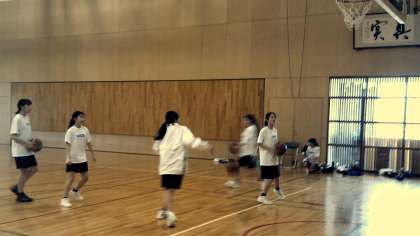 女子バスケットボール部の活動の様子です。いつも爽やかな挨拶で迎えてくれる女子バスケットボール部は、シュート練習に取り組んでいました。東京オリンピックで銀メダルを獲ったホーバスジャパンのように正確に3点シュートを決められるように取り組んでいます。
