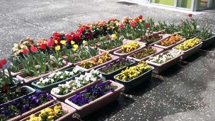 みんなの広場に咲くしだれ桜は、満開を過ぎて、すこしずつ緑の葉が見え隠れするようになりました。プランターのチューリップも鮮やかに咲いています。間もなく令和4年度も終わります。春の足音が聞こえるとともに、新学期がすぐそこまで来ています。