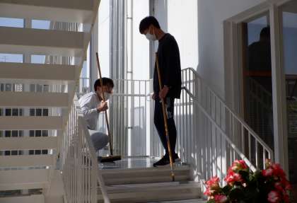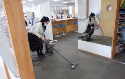 春休み中は生徒が登校しないので、毎朝8:15から先生たちで校舎の清掃をしています。来校者の方が気持ちよく来られるよう、心を込めて清掃をします!
