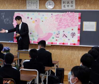入学式が終わって、各クラスで学活です。