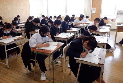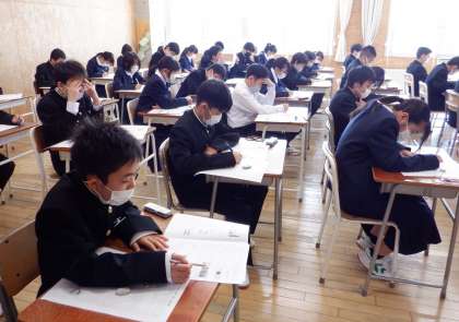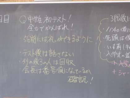 中1学力調査1日目 その1 公開日 2023/04/11 更新日 2023/04/11 芝園の一日 4月11日(火) 2限 1年生は、今日、明日と中1学力調査を行っています。 小学校で学習したことが、どのくらい力として身に付いているか確認をします。担任からの応援メッセージを受けて、頑張っています。