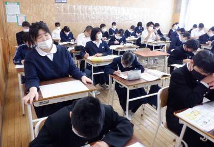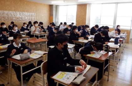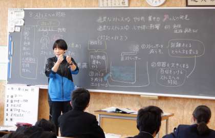 2−Cの保健体育の授業風景です。今日は「ストレスの対処法」について学習をしています。