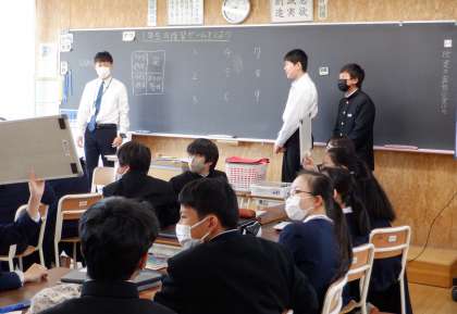 クイズで振り返り 1 2−A英語 公開日 2023/04/13 更新日 2023/04/13 芝園の一日 4月13日(木) 1限 2−Aの英語の授業風景です。1年生で学習したことを、各グループからクイズを出して復習をしています。 とっても楽しそうですね!
