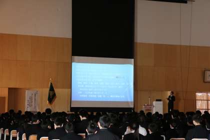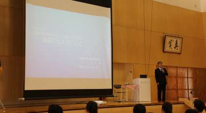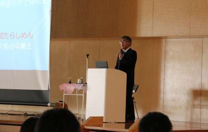 創校記念式 その1 公開日 2023/04/13 更新日 2023/04/13 芝園の一日 4月13日(木) 本日、本校の学校運営協会長会長、そして第27回卒業生である水上豊先生をお招きして、創校記念式を開催しました。 在校生に向けて、興味のあることを生涯学習していくことの大切さや、重要性についてお話しになりました。