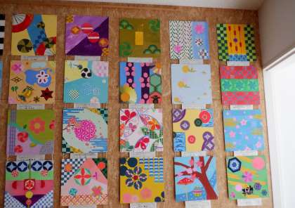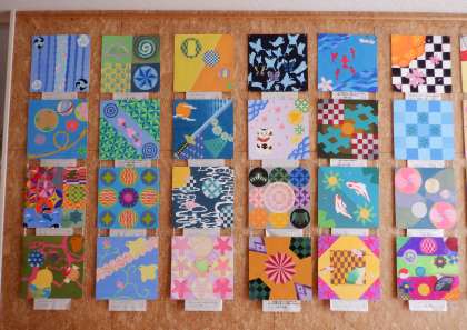 2学年のフロアには、1年生の時に制作したデザインパネルが展示してあります。