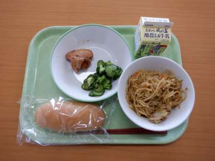 ちょうど焼きそばの鍋ににんじんを投入されていました。いつも、熱々で美味しい給食を作っていただきありがとうございます!