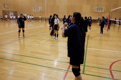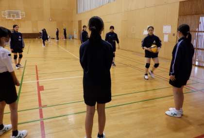 4月14日(金) 放課後 バレーボール部です。3年生を中心に、優しく教えています。