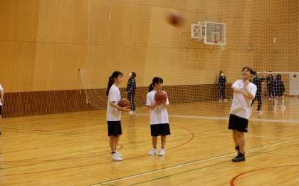 4月14日(金) 放課後 女子バスケットボール部です。 いつも元気いっぱい。笑顔が輝いています。
