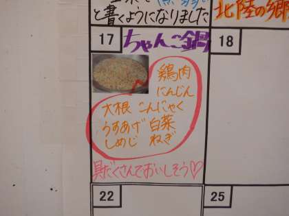 ・ちゃんこ鍋 ・ごま酢あえ です。