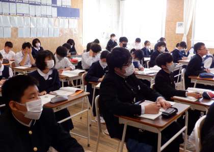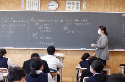 2−Bの数学の授業風景です。「単項式・多項式における次数の数え方」について学習をしています。