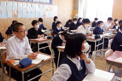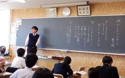 2−Cの国語の授業風景です。椎名誠さんの「アイスプラネット」の教材で学習をしています。先生と言葉のキャッチボールをしながら、楽しく学習しています。