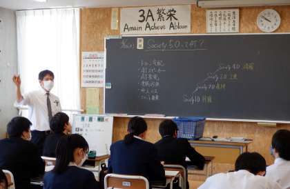 Society 5.0とは 3−A技術 公開日 2023/04/20 更新日 2023/04/20 芝園の一日 4月20日(木) 2限 3−Aの技術の授業風景です。最近よく耳にする「Society 5.0」。一体どういうことなのか、生徒は自分事として考えを深めています。