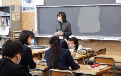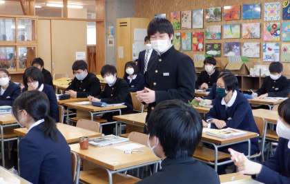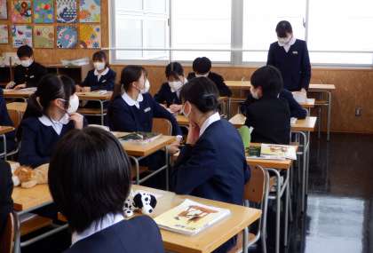 3−Cの美術の授業風景です。今年度着任された先生との初めての授業です。ますは、自己紹介から。これから1年間、よろしくお願いします!