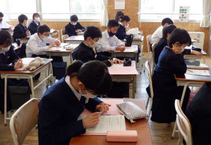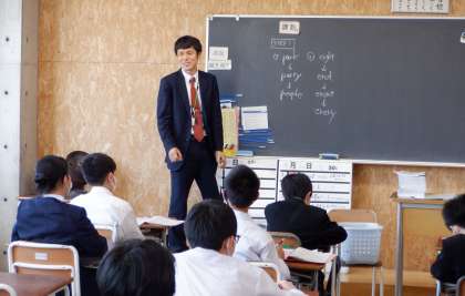 1−Cの英語の授業風景です。英単語をどのように学習していくか、一つ一つ確認しながら授業を進めています。