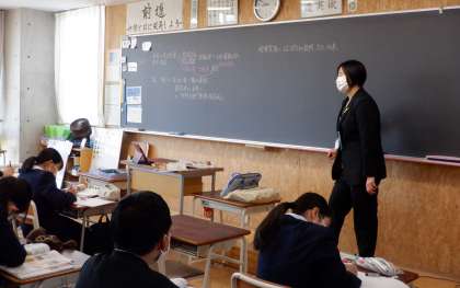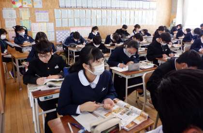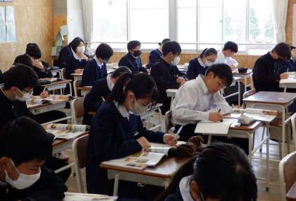 2−2の社会の授業風景です。「桃山文化」について学習をしています。