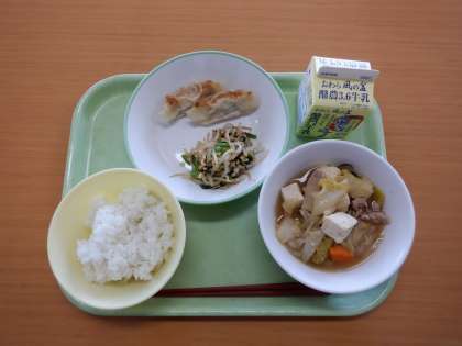 今日の給食 公開日 2023/04/22 更新日 2023/04/22 芝園の一日 4月22日(土) 今日の給食メニューは、 ・ごはん ・牛乳 ・焼き餃子 ・肉豆腐 ・いり大豆あえ です。 いり大豆は香ばしく、野菜が進みました。美味しかったです。