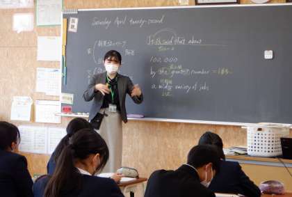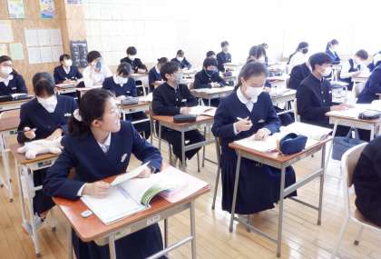3−Dの英語の授業風景です。本文について、文法事項を確認しながら読み進めています。集中しています!