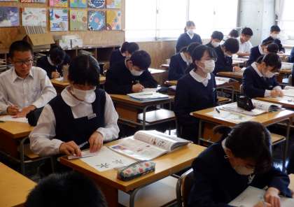 レタリング 2−C美術 公開日 2023/05/01 更新日 2023/05/01 芝園の一日 5月1日(月) 2限 2−Cの美術の授業風景です。「レタリング」の学習をしています。レタリングは、的確なメッセージと高いデザイン性をもっているため、メニューや看板などにもよく使われます。
