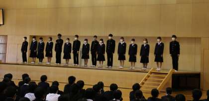 結団式 その1 公開日 2023/05/01 更新日 2023/05/01 芝園の一日 5月1日(月) 5月23日に実施する体育大会に向けて、結団式行いました。 実行委員長の言葉、実行委員及び係長の紹介、そして体育大会スローガンの発表がありました。 スローガンは 「挑 〜限界を突破し 全力を尽くせ〜」です。