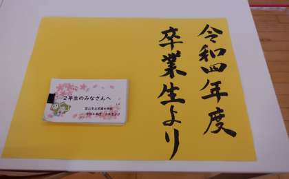 先輩から後輩へ 公開日 2023/05/11 更新日 2023/05/11 芝園の一日 5月11日(木) 3学年のフロアには、昨年度卒業した先輩からのメッセージが置いてあります。先輩から後輩へ、応援メッセージが受け継がれています。