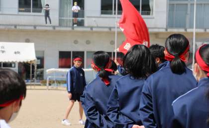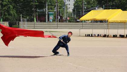 旭日団の団活動の様子です。団旗の動きが力強いですね!
