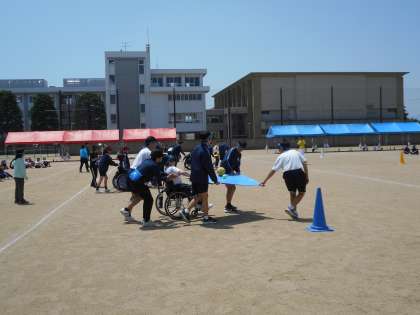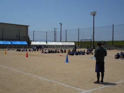 暑い日差しの中、学年種目の練習をしています。