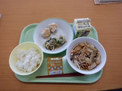 今日の給食 公開日 2023/05/16 更新日 2023/05/16 芝園の一日 5月16日(火) 今日の給食メニューは、 ・ごはん ・牛乳 ・にんじんシューマイ ・かやくうどん ・おひたし ・野菜ふりかけ です。 うどんには、たくさんの具が入っていてボリュームたっぷりでした。