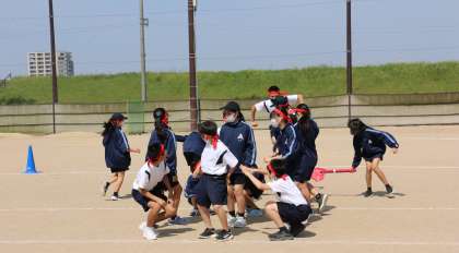 5月18日(木) 1限 1年旭日団の学年練習の様子です。作戦は上手くいってるかな?