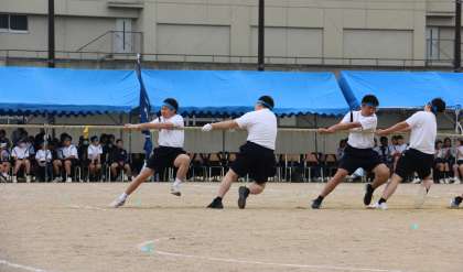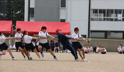 本番に向けて 3学年種目 公開日 2023/05/22 更新日 2023/05/22 芝園の一日 5月22日(月) 3年の学年種目は「とにかくひっぱる3年生〜安心してください、燃えてますよ〜」です。本日は、予選を行いました。