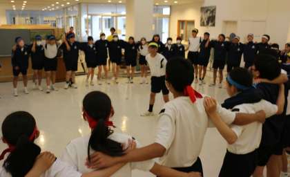 実行委員長を中心に、リーダー全員で円陣を組みました。これまでみんなで頑張ってきたお互いをたたえ合う、温かい時間になりました。