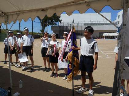 体育大会 その21 公開日 2023/05/24 更新日 2023/05/24 芝園の一日 5月24日(水) 体育大会終了後、各団、解団式を行いました。 その後、3年生は集合写真を撮りました。思い出の1枚です