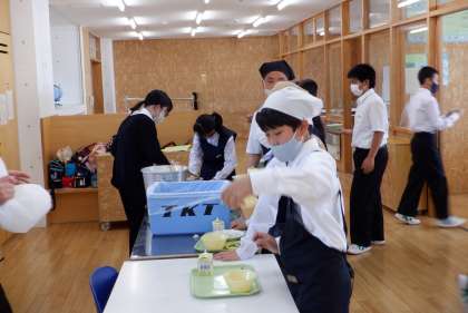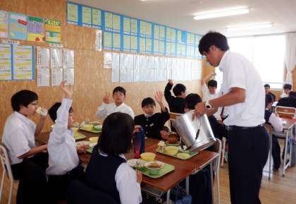 給食 大好き! その1 公開日 2023/05/25 更新日 2023/05/25 芝園の一日 5月25日(木) 1年生の給食の風景です。配膳も慣れてきました。 手を挙げているのは、おかわりを求めて。1年生、モリモリ食べます!